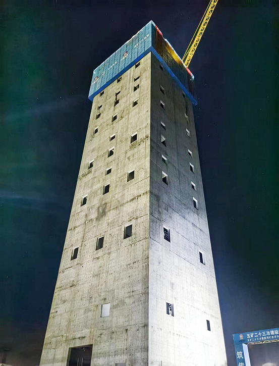 主井井塔樓為康家灣礦技術升級改造工程項目采礦系統關鍵單位工程,設計高度71.60米,采用鋼筋混凝土框架結構。該工程于今年2月6日開始動工,計劃9月30日完成土建項目。